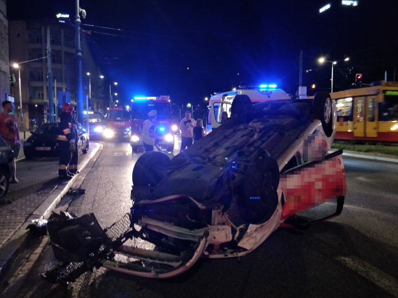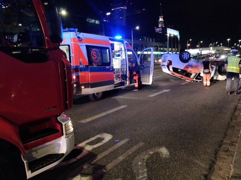 Z ostatniej chwili: dachowanie taksówki przy pl. Starynkiewicza. Są ranni