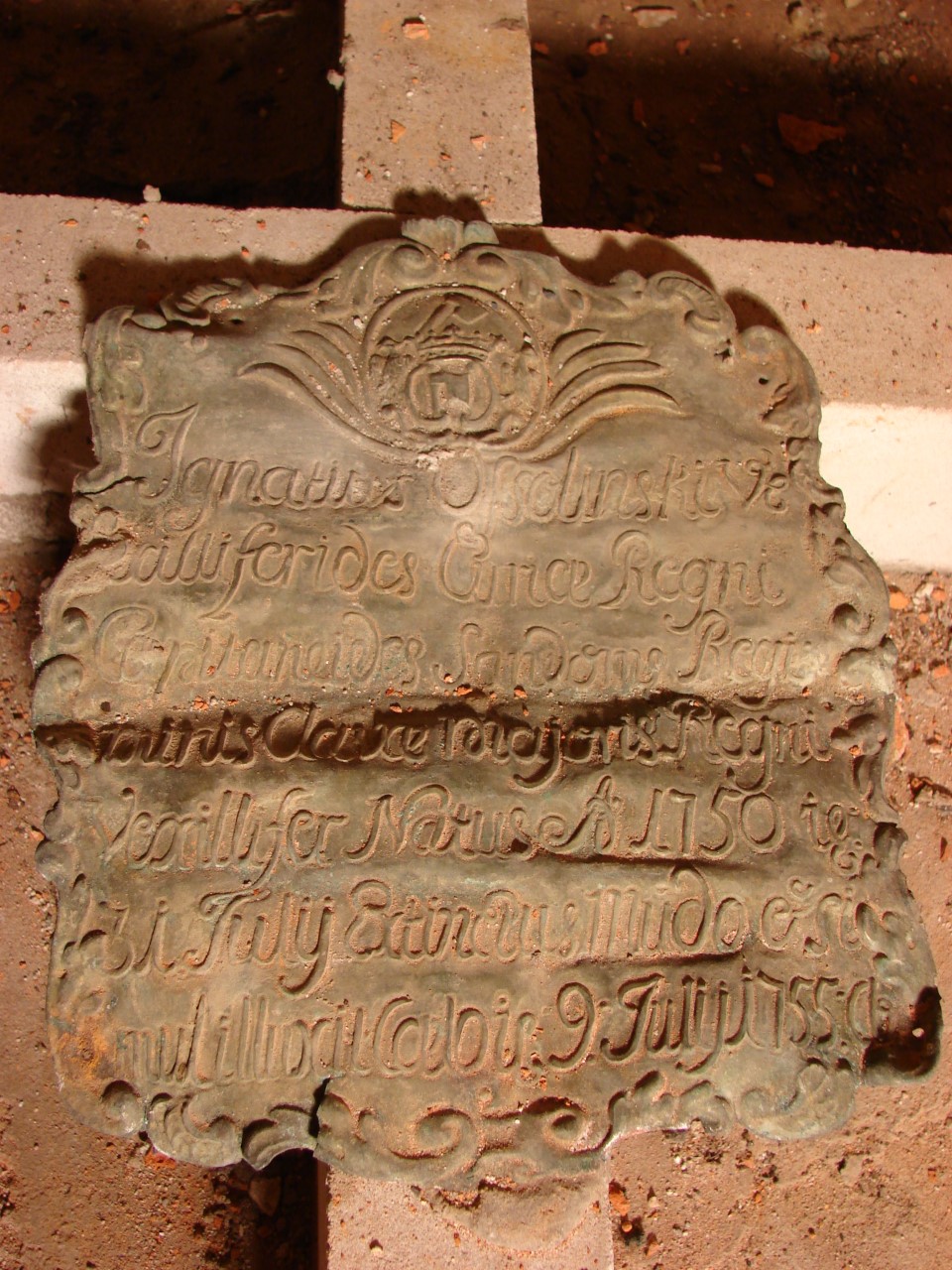 Prawdopodobnie jest to pochówek 5-letniego Ignacego Ossolińskiego, zmarłego w 1755r. Mimo młodego wieku był on obdarzony tytułami chorążego Dworu Królewskiego, kapitana sandomierskiego, Regimentu Laski Wielkiej Królewskiej Chorągwi.