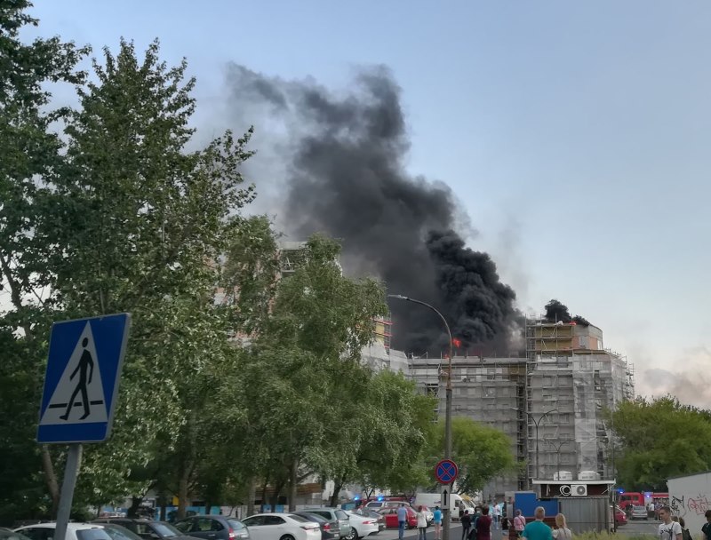 Na skrzyżowaniu Marsylskiej i Śródziemnomorskiej płonie nowy, budowany jeszcze blok mieszkalny. Na miejscu mnóstwo służb, dym widoczny jest z kilku kilometrów!