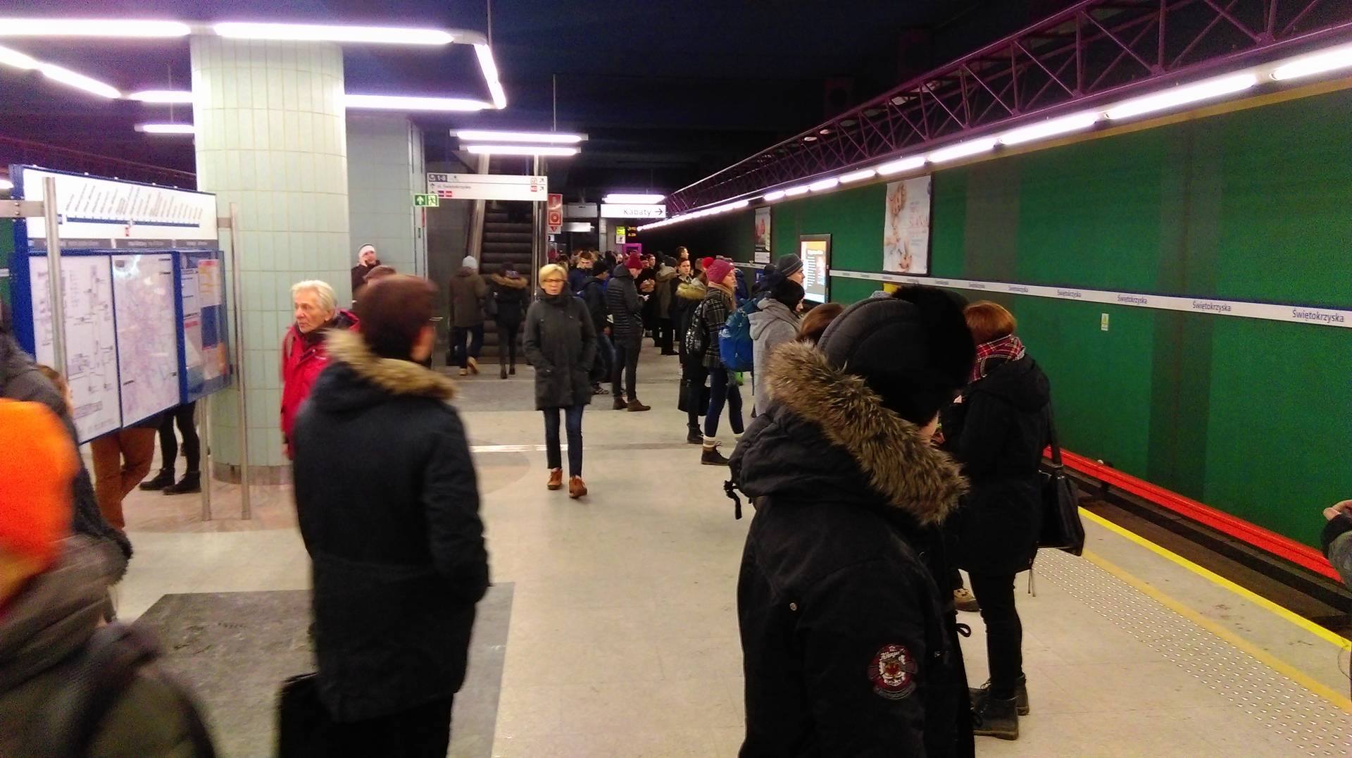 Paraliż metra. Zdezorientowani pasażerowie wychodzą z pociągów i nie wiedzą co się dzieje. Jak dowiedzieliśmy się od Anny Bartoń, rzeczniczki prasowej stołecznego metra na stacji Racławicka miała miejsce próba samobójcza, natomiast na stacji Politechnika odnotowano duże zadymienie.