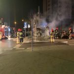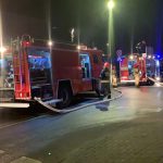 Na ulicy Kruszewskiego ma miejsce akcja straży pożarnej. Na miejscu pracują trzy jednostki i gaszą pożar.
