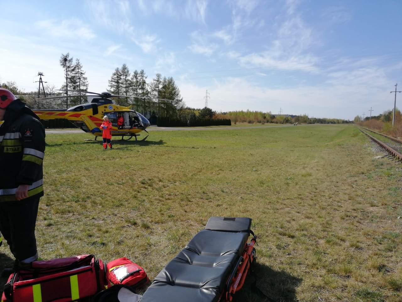 Ranny motocyklista został przetransportowany śmigłowcem LPR do szpitala.