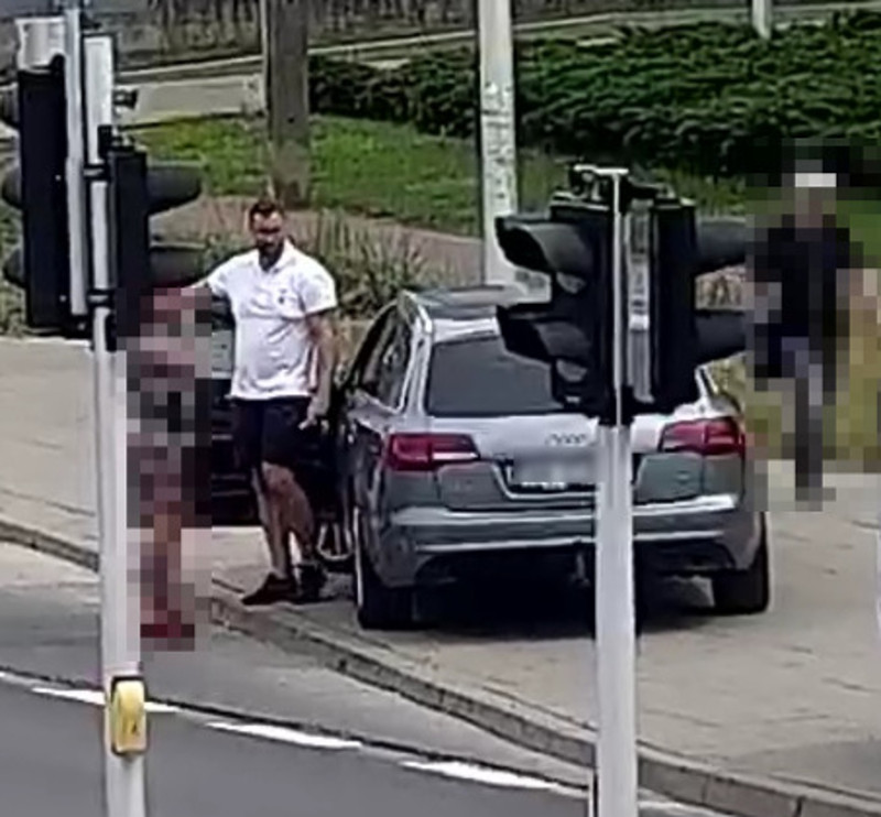 Jest on w wieku około 35 lat, ma około 200 cm wzrostu, włosy koloru czarnego zaczesane na bok, jest atletycznej budowy ciała. Ubrany był w białą koszulkę typu polo, czarne spodnie jeansowe o długości do kolan i czarne buty sportowe. Posiadał tatuaże na rękach i nogach. Mężczyzna poruszał się pojazdem m-ki Audi A6.
