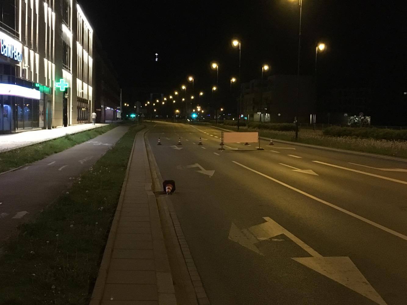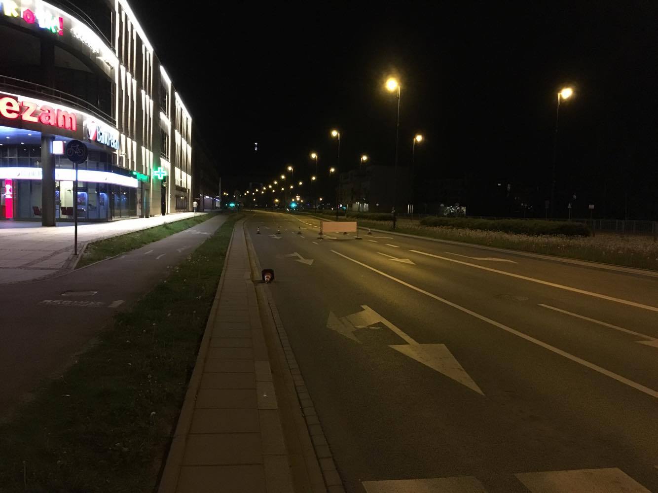 Po poprzewracanych słupkach widać, że kierowy omijają środkowy pas i mimo niebezpieczeństwa jadą dalej w kierunku skrzyżowania.