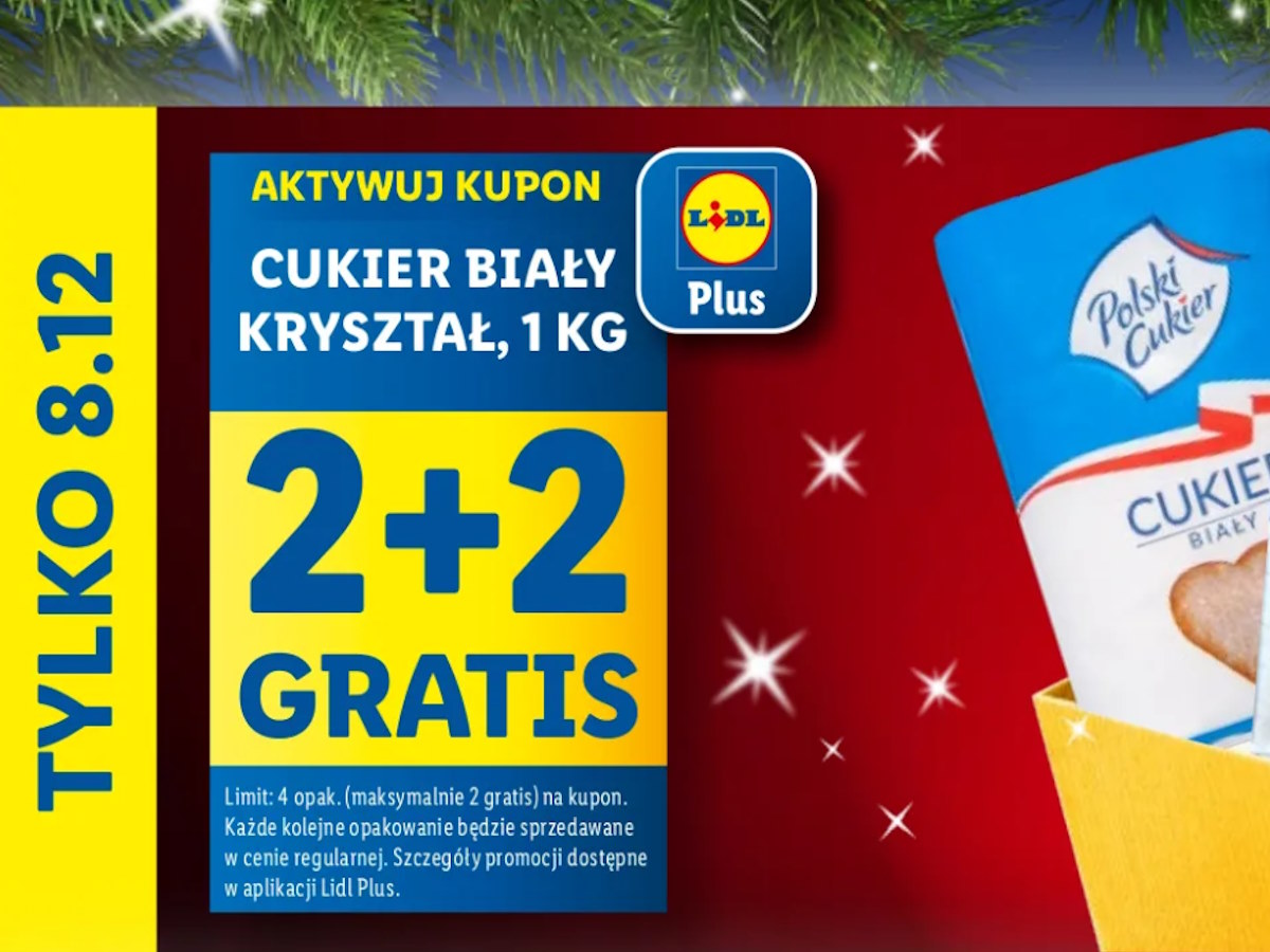 Już w najbliższy piątek, 8 grudnia, klienci sieci sklepów Lidl będą mieli okazję skorzystać z powracającej promocji 2+2 gratis na cukier biały kryształ. Oferta ta będzie dostępna wyłącznie dla użytkowników aplikacji Lidl Plus, którzy aktywują odpowiednie kupony.