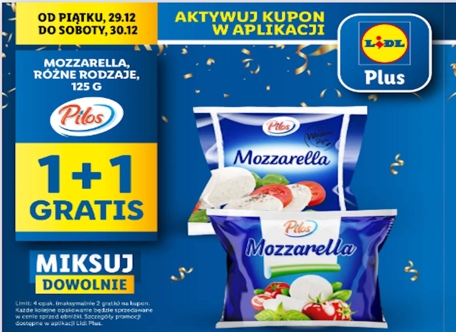Już w najbliższy piątek, sieć sklepów Lidl ponownie uruchamia swoją popularną promocję „1+1 gratis” na wybrane produkty, ciesząc się wielkim zainteresowaniem klientów. Tym razem na klientów czeka okazja do skorzystania z oferty na ser mozzarella marki Pilos w opakowaniach o gramaturze 125g.