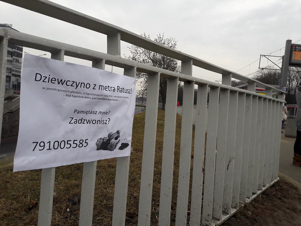 „Zakochany chłopak poszukuje dziewczyny z metra Ratusz? Tajemnicze ogłoszenie na przystanku tramwajowy Reduta Wolska. Czytelnicy Informatora pomożecie? Podajcie dalej.” – czytamy na profilu Informator Stolicy.