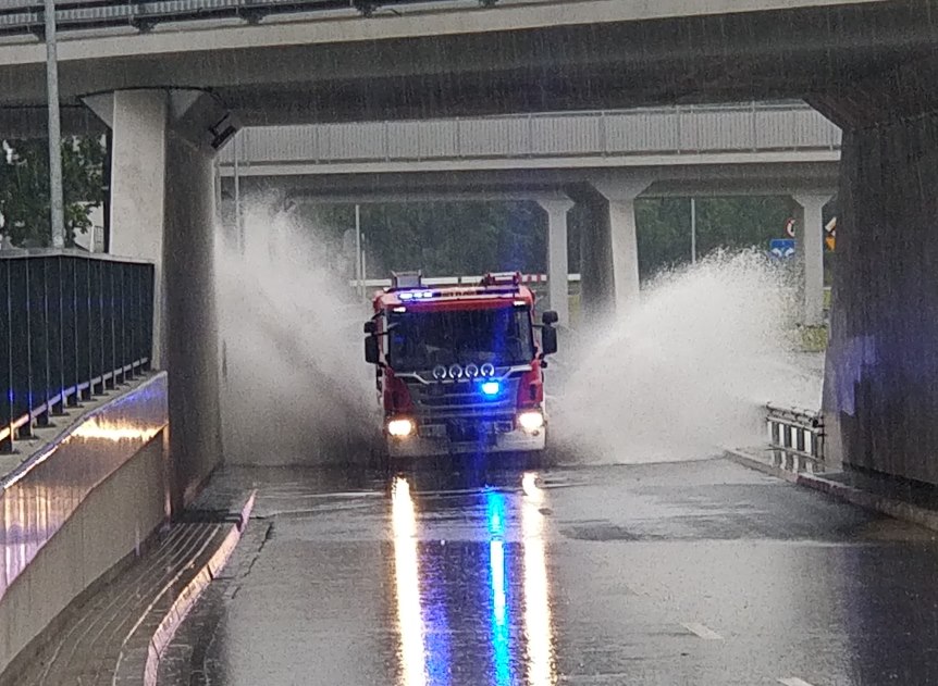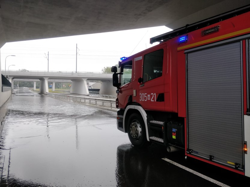 Z powodu ulewnego deszczu po raz kolejny zalany został tunel Trasy Świętokrzyskiej. Na miejscu są służby, a pojazdy komunikacji miejskiej zostały skierowane na objazdy.