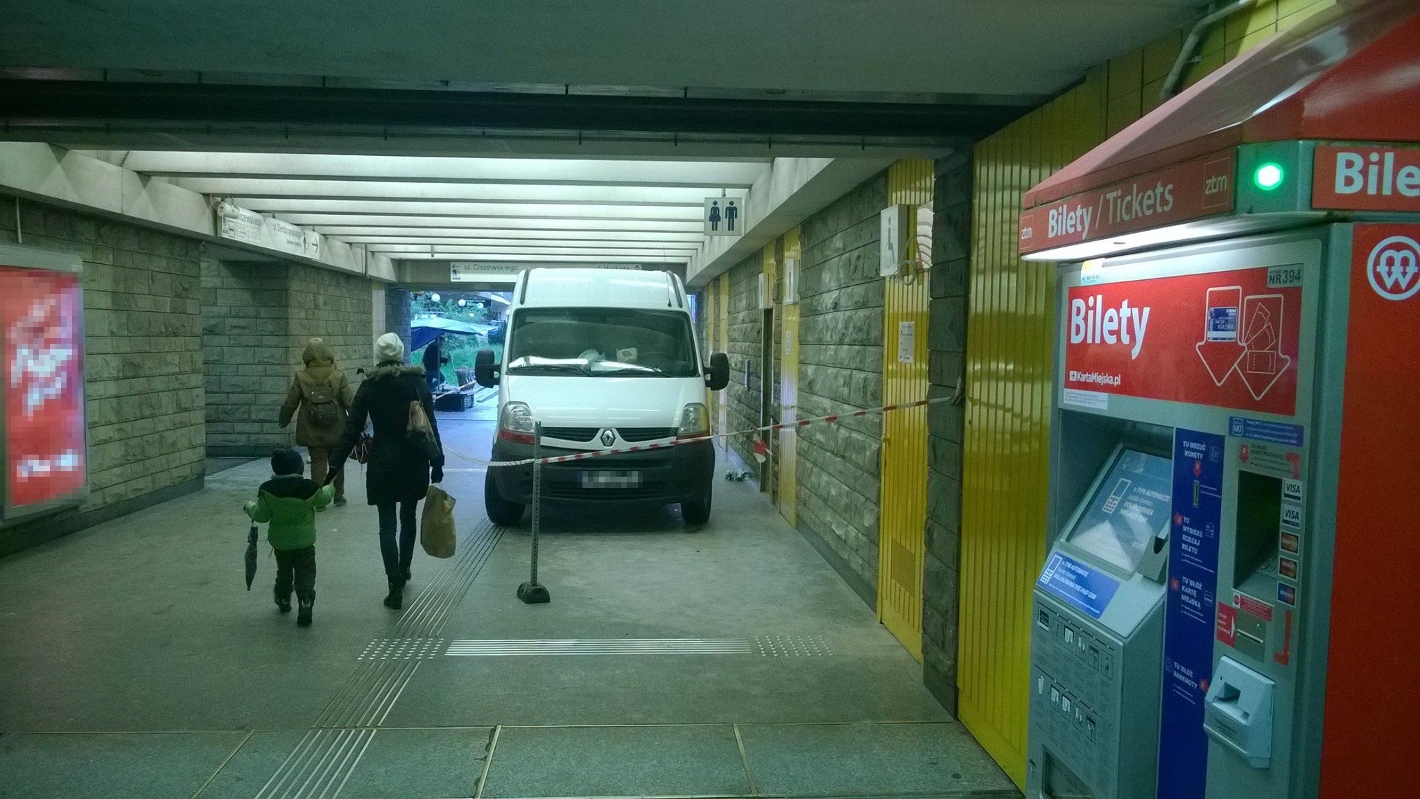 Niektórzy parkują przy wejściu do metra uniemożliwiając innym dostanie się na stację. Amatorzy! Ten kierowca wjechał do środka, by skrócić sobie drogę do remontowanej toalety.