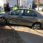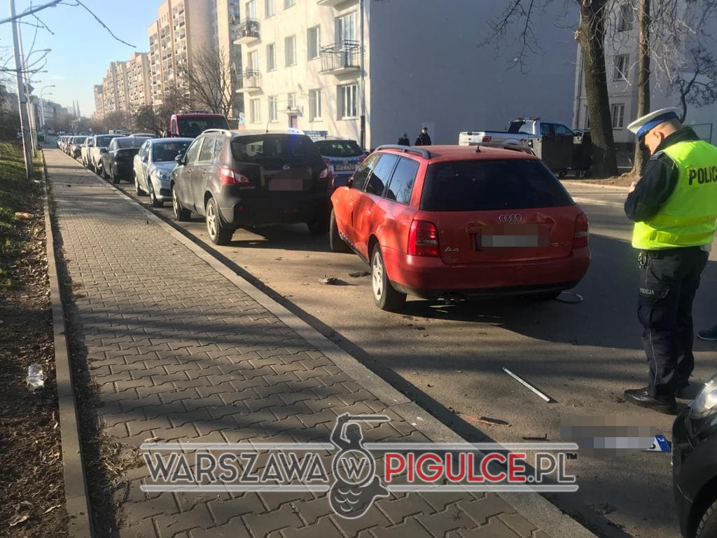 Na ulicy Białostockiej podczas manewru wyprzedzania doszło do zderzenia, w wyniku czego jedno z aut zostało wybite z toru jazdy i wpadło na zaparkowane auta. Nikt nie został ranny.