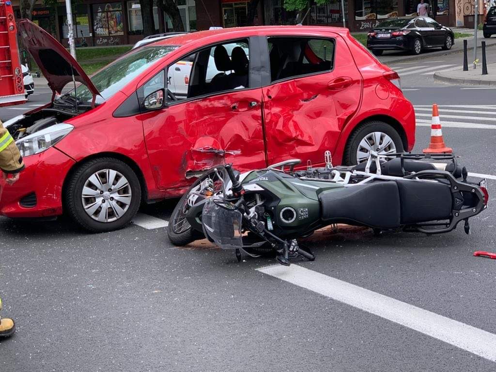 Na ulicy Wołoskiej z Odyńca na Mokotowie doszło do zderzenia samochodu osobowego marki toyota z motocyklem marki triumph. Ranny motocyklista trafił do szpitala.