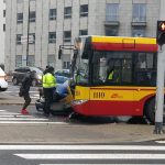 Na skrzyżowaniu ulic Powązkowskiej i Krasińskiego doszło do zderzenia autobusu linii 122 z samochodem osobowym marki saab.