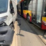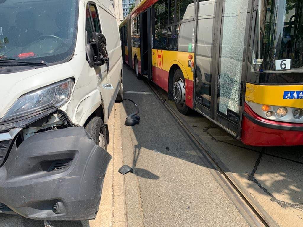 Na skrzyżowaniu al. Solidarności z Bielańską w Śródmieściu doszło do zderzenia miejskiego autobusu z autem dostawczym marki citroen. Poszkodowane były trzy osoby, jedna została przewieziona do szpitala.