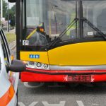 Zderzenie autobusu z samochodem. Auto wylądowało na boku