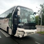 Na skrzyżowaniu Al. Solidarności z ul. Rzeszotarskiej doszło do zderzenia autobusu prywatnej sieci z samochodem osobowym.