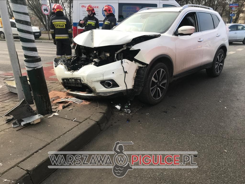 Na Rondzie Radosława na zjeździe w al. Jana Pawła II w kierunku centrum doszło do zderzenia dwóch samochodów osobowych BMW i nissana. Nissan po zderzeniu wjechał w słup. Jedna osoba badana jest w karetce pogotowia.