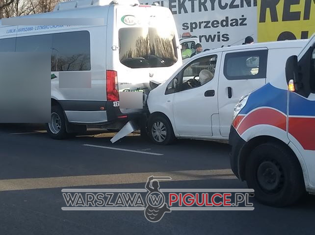 Na Wale Miedzeszyńskim doszło do zderzenia busa z pasażerami i samochodu osobowego.