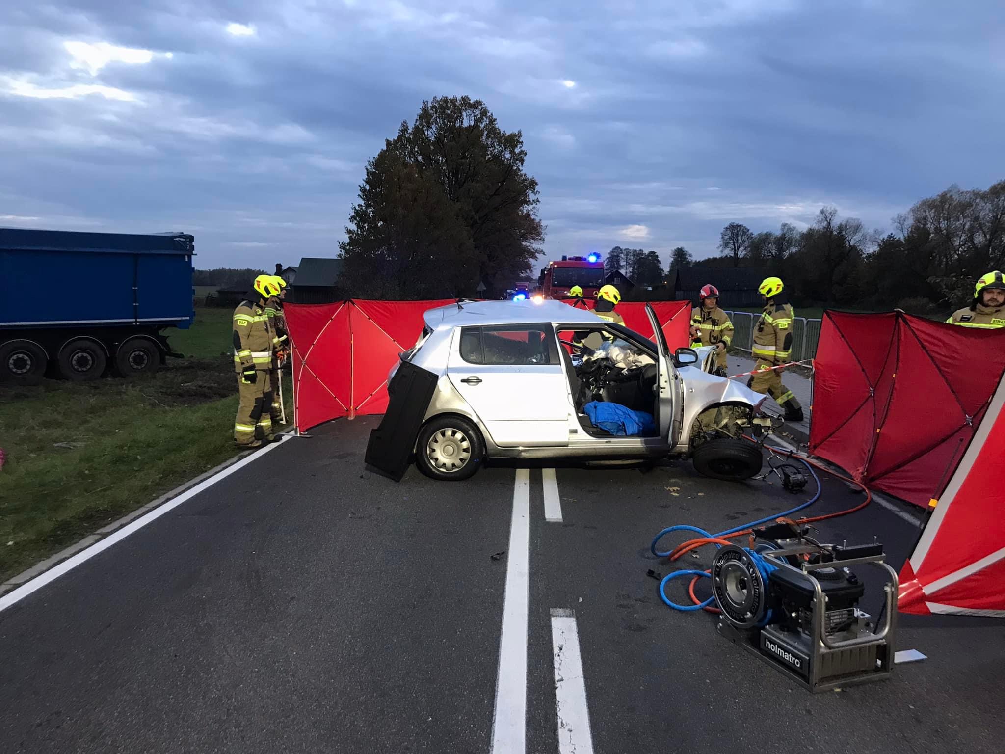 Zderzenie ciężarówki z osobówką. Jedna osoba zginęła na miejscu