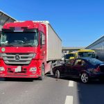 Na trasie S8 na pasach lokalnych pomiędzy Rembielińską a Marywilską w kierunku Poznania doszło do zderzenia ciężarówki z samochodem osobowym marki volkswagen. Auto stanęło w poprzek jezdni. Nikomu nic się nie stało.