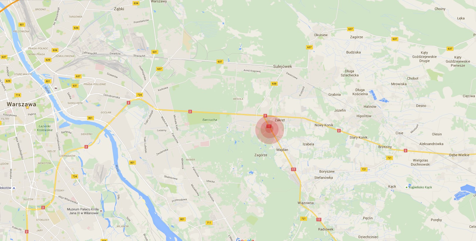 Stołeczna straż pożarna informuje, że droga krajowa nr 17 zablokowana jest w obu kierunkach. W wyniku zderzenia zapalił się samochód osobowy. Kierowca niestety zginął na miejscu. Straż pożarna w porę ugasiła pożar, by nie przeniósł się na cysternę.