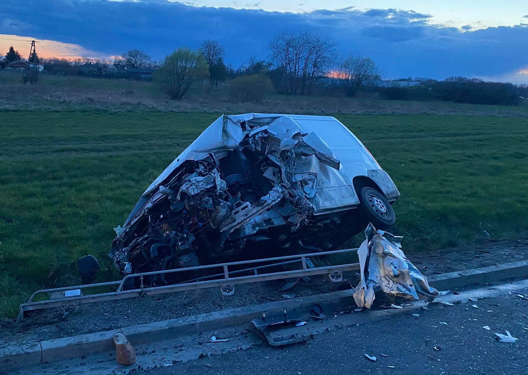 Zderzenie czołowe samochodu dostawczego z ciężarówką. Jedna osoba zginęła na miejscu