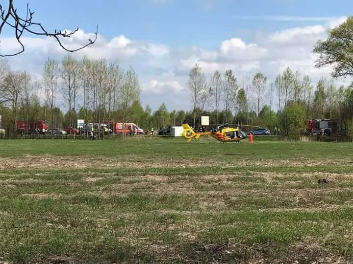 Zderzenie czołowe w Kobyłce. Helikopter pogotowia w akcji, utrudnienia na drodze