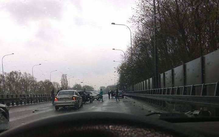 Zderzenie czterech aut w jednym miejscu i czterech w drugim na Wisłostradzie. Zablokowany ruch w stronę Łomianek