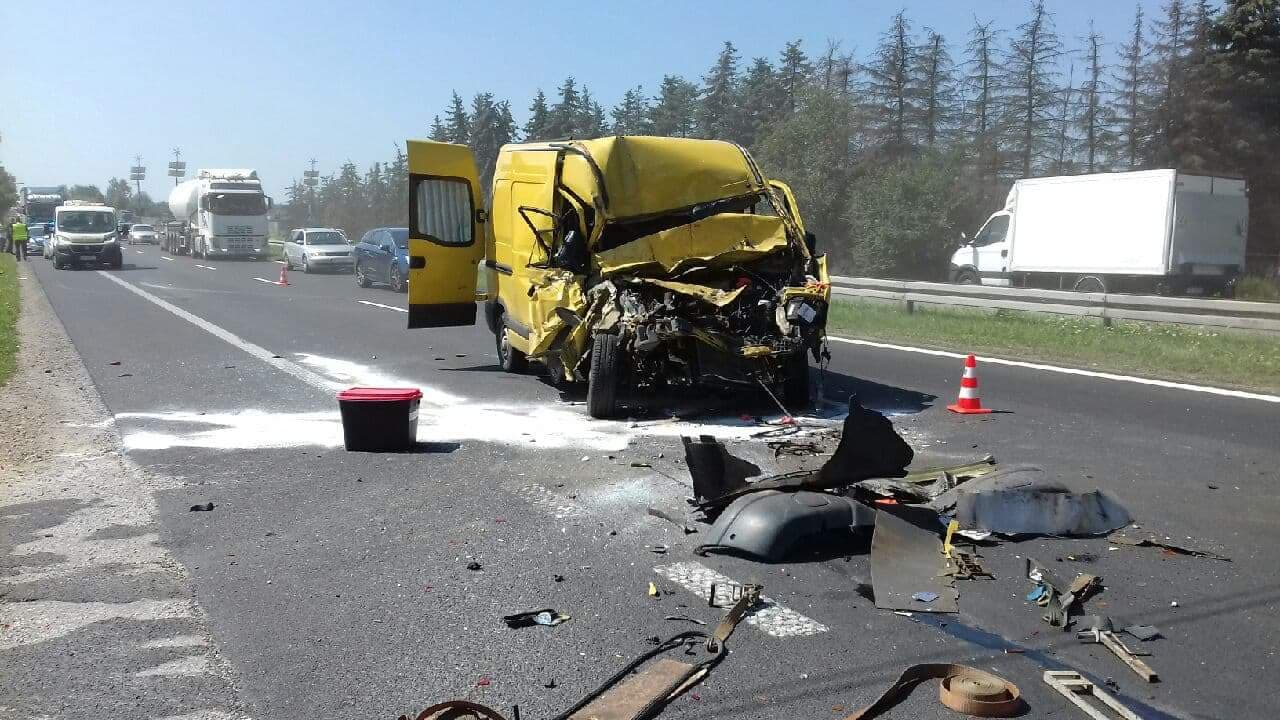 Na DK7 w Tarczynie doszło do poważnego zderzenia samochodu dostawczego z ciężarówką. Dwa pasy w kierunku Warszawy są zablokowane. Czynny jest tylko jeden pas drogi, są ogromne utrudnienia.