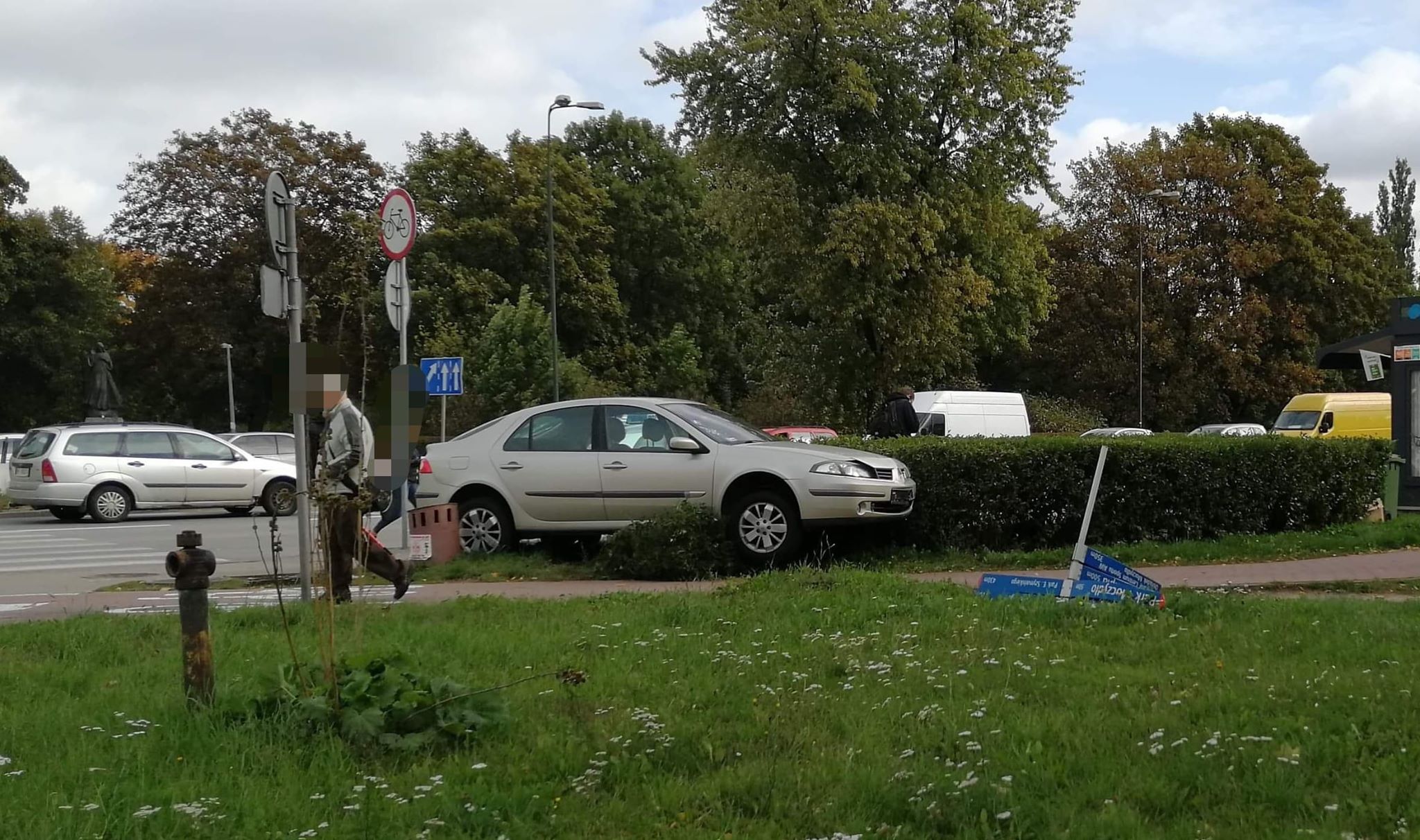 Na skrzyżowaniu Górczewskiej z elekcyjną na Woli doszło do zderzenia volkswagena z renault. Renault po zderzeniu wjechało w znak i zawisło na żywopłocie. Nikt nie został ranny.