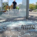 Zderzenie dwóch aut. Jedno z nich wjechało w przystanek i potrąciło dwie osoby