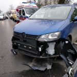 Zderzenie dwóch aut na Bielanach. Na miejscu 2 karetki pogotowia. Dwie osoby ranne, w tym trzymiesięczne dziecko