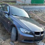 Zderzenie dwóch aut na Bródnie. BMW wpadło do wykopu