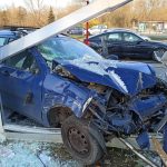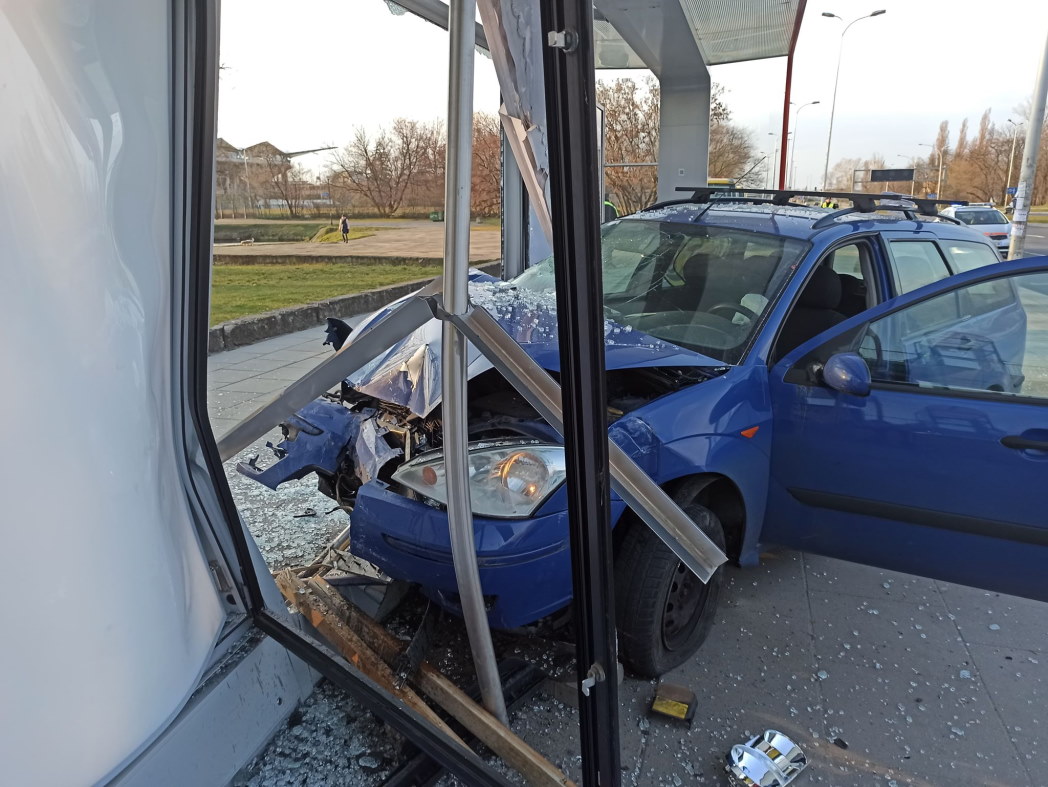 W wyniku zderzenia ford wjechał w przystanek.