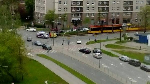 Jak dowiedzieliśmy się w Biurze Prasowym Komendy Stołecznej Policji do zdarzenia doszło o godz. 13.20. Samochód marki BMW zderzył się z Fiatem. Jeden z pojazdów utknął na torowisku blokując przejazd tramwajom. Jedna osoba z Fiata została przetransportowana do szpitala.
