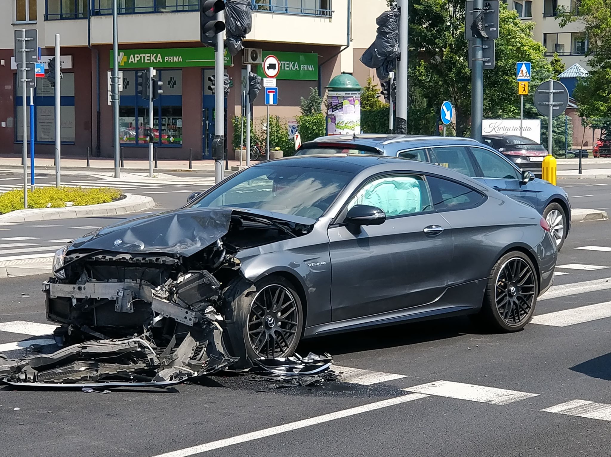 Na ulicy Łodygowej z Potulicką doszło do zderzenia dwóch aut mercedesa i audi. Mercedes po zderzeniu wjechał pod prąd, gdzie zakończył swoją jazdę. Nikomu nic się nie stało.