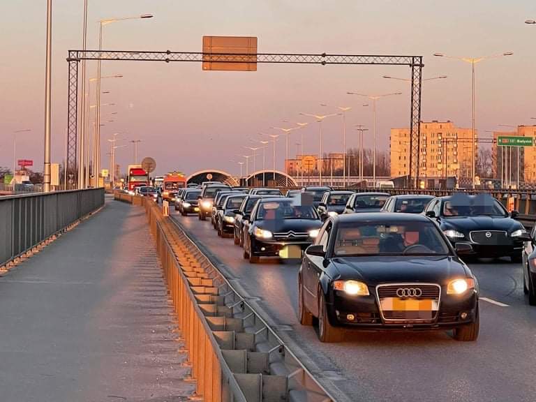 Drożny jest tylko jeden pas ruchu. Występują duże utrudnienia w ruchu.