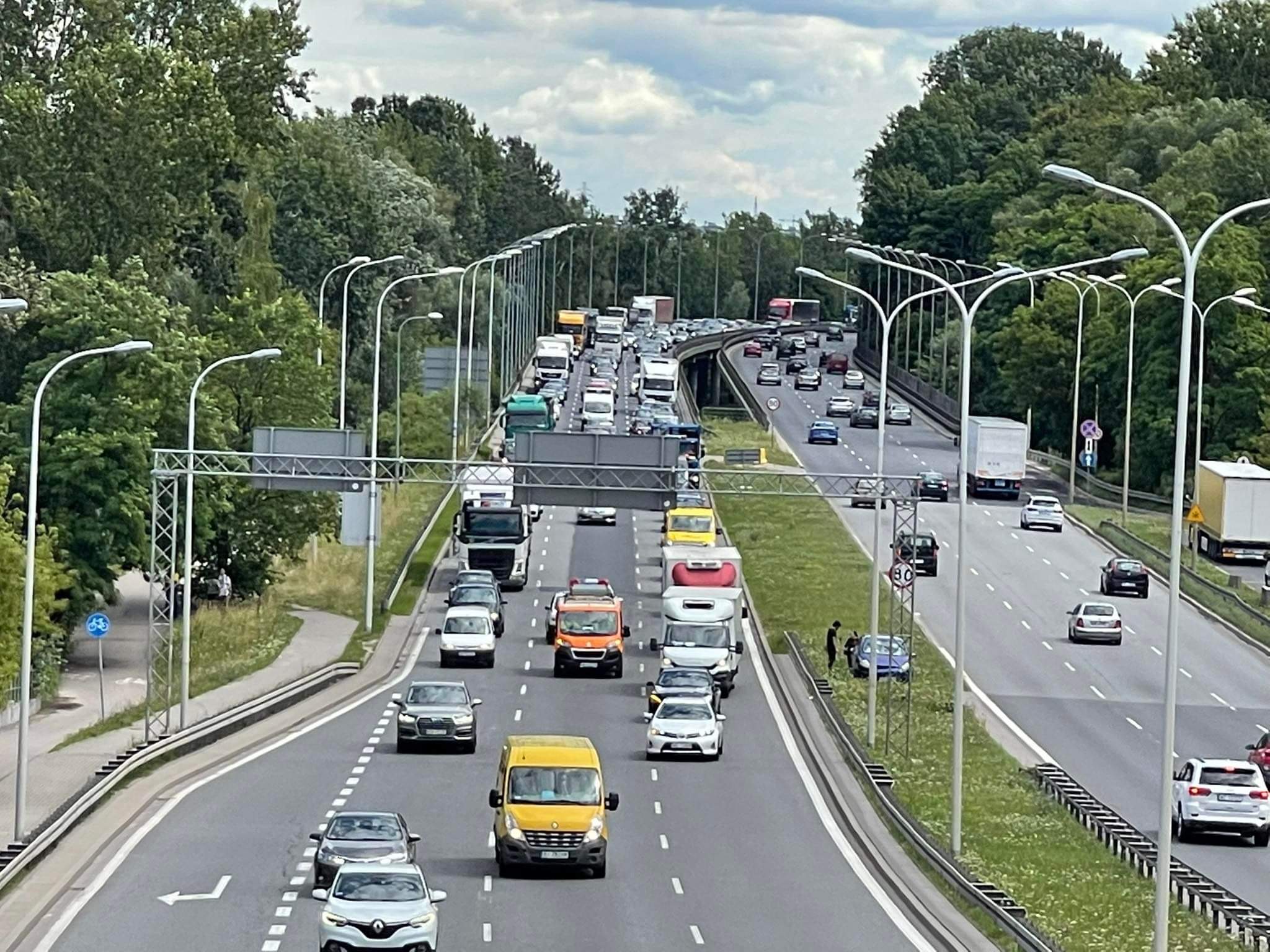 Zablokowany został jeden pas ruchu przez co utworzyły się gigantyczne korki.