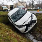 Na ulicy Żwirki i Wigury doszło do zderzenia dwóch samochodów osobowych marki dacia i toyota. Po zderzeniu toyota wpadła do rowu i wylądowała na boku. Nikomu nic się nie stało.