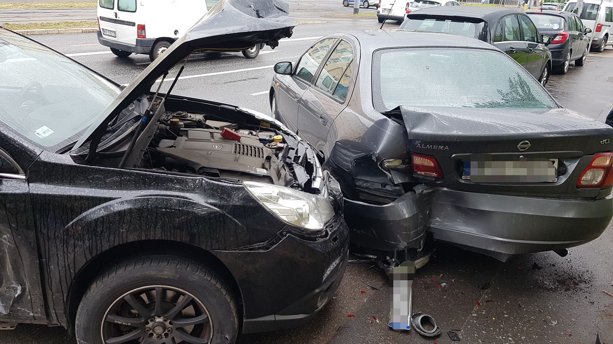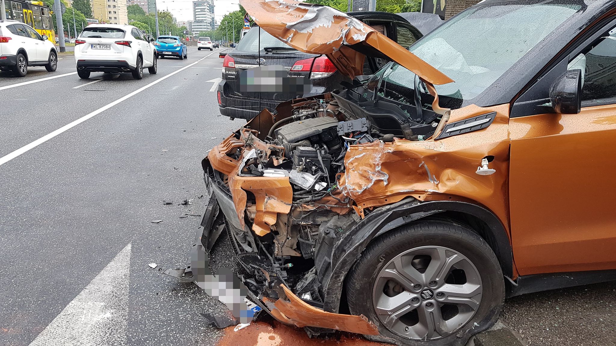 Ze wstępnych ustaleń wynika, że kierujący subaru zmieniając pas ruchu z lewego na prawy uderzył w prawidłowo jadące suzuki, po zderzeniu auta wjechały w dwa zaparkowane samochody. Jedna osoba została ranna.