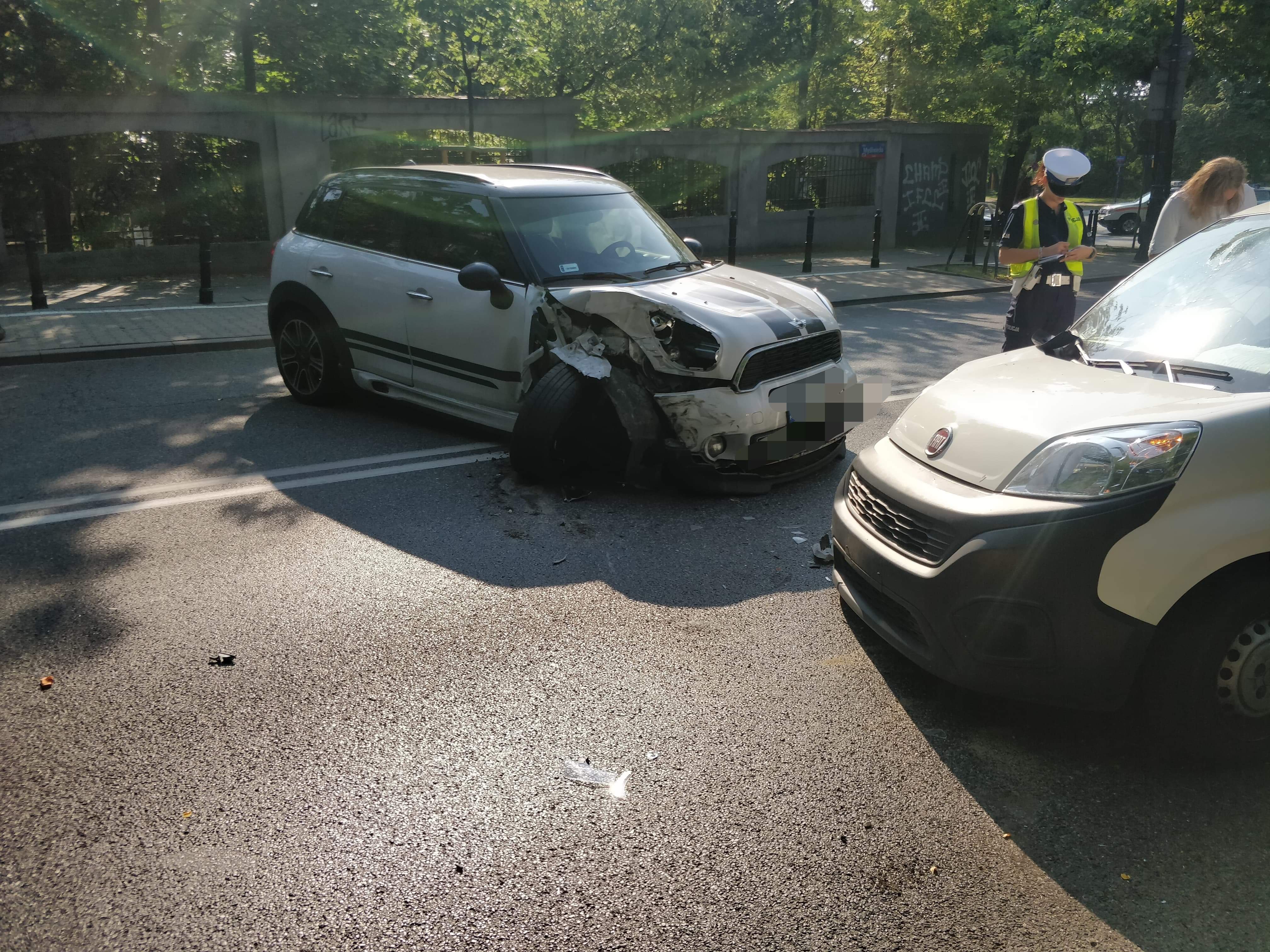 Do wypadku doszło na ulicy Myśliwieckiej doszło do zderzenia Mini z fiatem. W zdarzeniu nikt nie został ranny. Droga jest zablokowana.