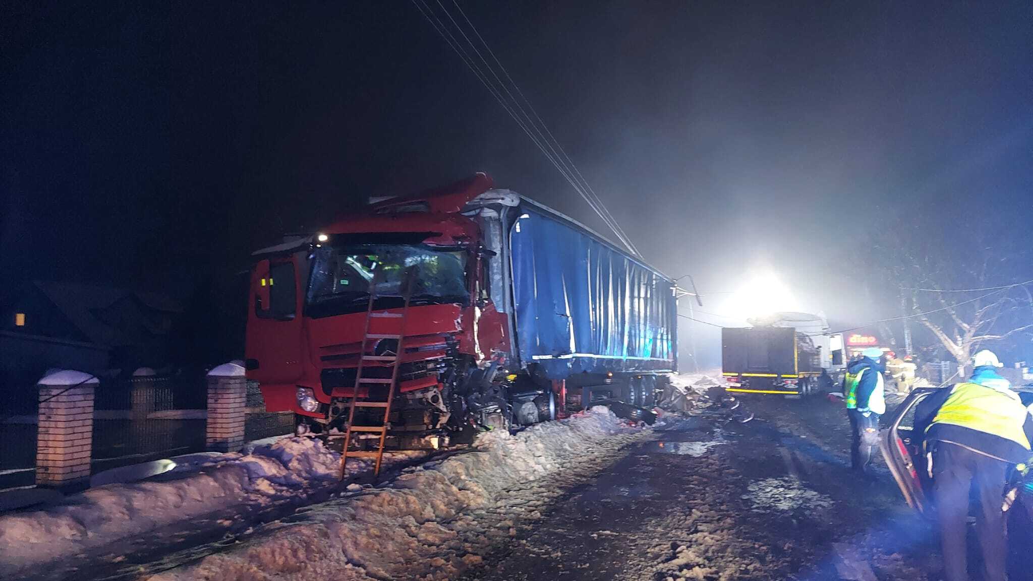 Groźne zdarzenie drogowe w powiecie nowodworskim. W nocy z 14 na 15 stycznia 2026 roku, tuż przed godziną 22:00, służby ratunkowe zostały poinformowane o wypadku. W miejscowości Kazuń-Bielany doszło do zderzenia dwóch samochodów ciężarowych. Siła uderzenia była tak duża, że pojazdy staranowały infrastrukturę drogową i uderzyły w słup energetyczny.