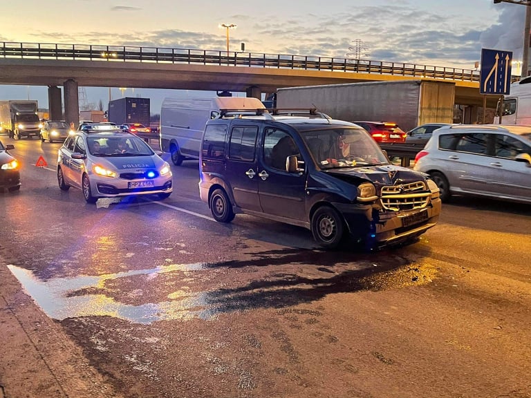 Na trasie S8 na wysokości ulicy Jagiellońskiej w kierunku Marek doszło do zderzenia dwóch samochodów osobowych i ciężarówki. Nikomu nic się nie stało.