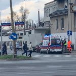 Ranna została kobieta w ciąży, którą wyniesiono na noszach do karetki pogotowia.