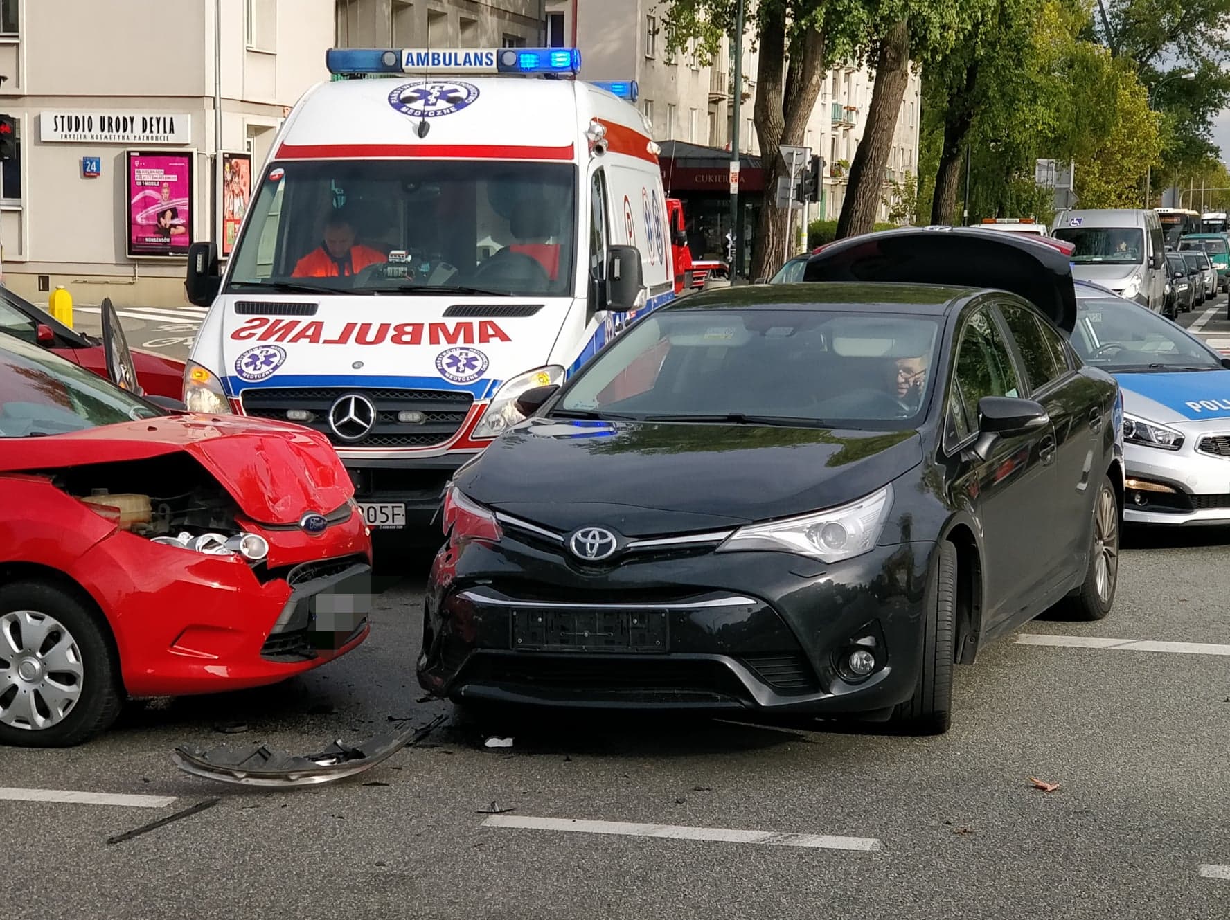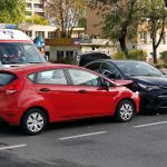 Zderzenie dwóch samochodów osobowych na Bielanach. Skrzyżowanie zablokowane