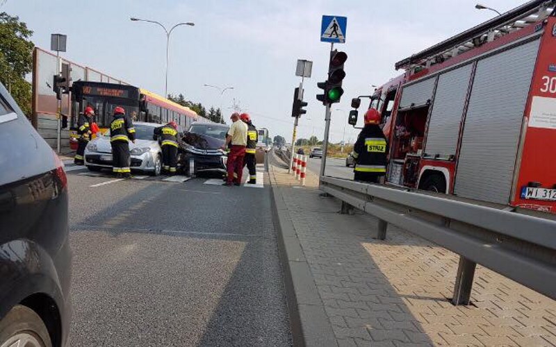 Zderzenie dwóch samochodów osobowych. Wał Miedzeszyński zablokowany