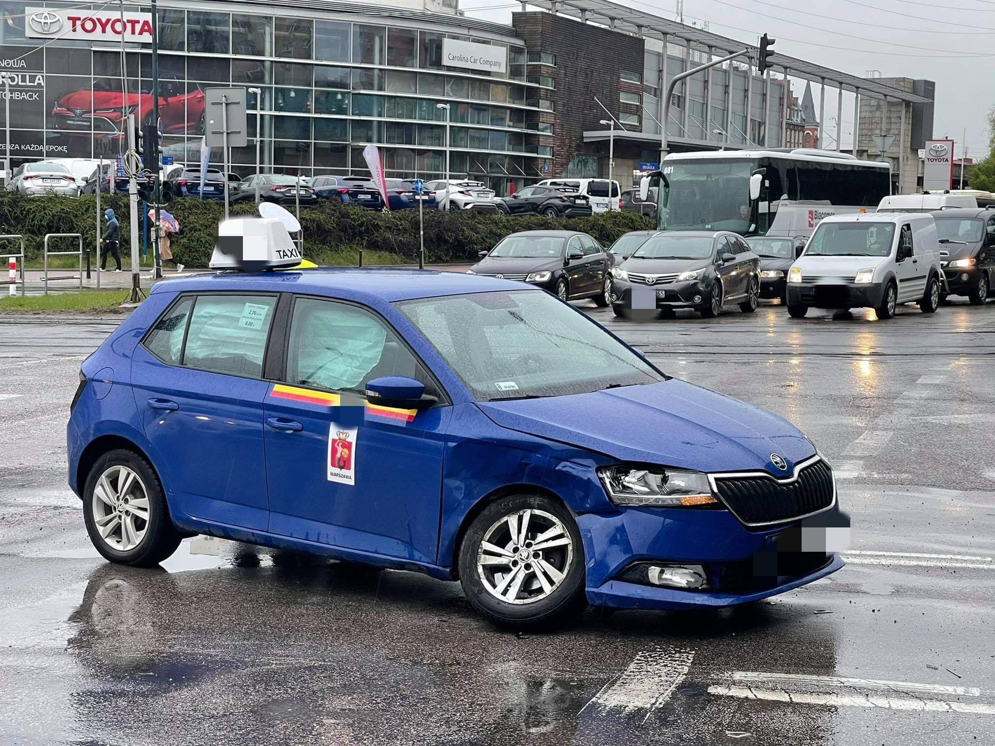 Na skrzyżowaniu Wolskiej z al. Prymasa Tysiąclecia doszło do zderzenia dwóch samochodów osobowych marki skoda i toyota. Jak mówi nasz reporter oba pojazdy to taksówki. Jedna osoba badana jest w karetce pogotowia.