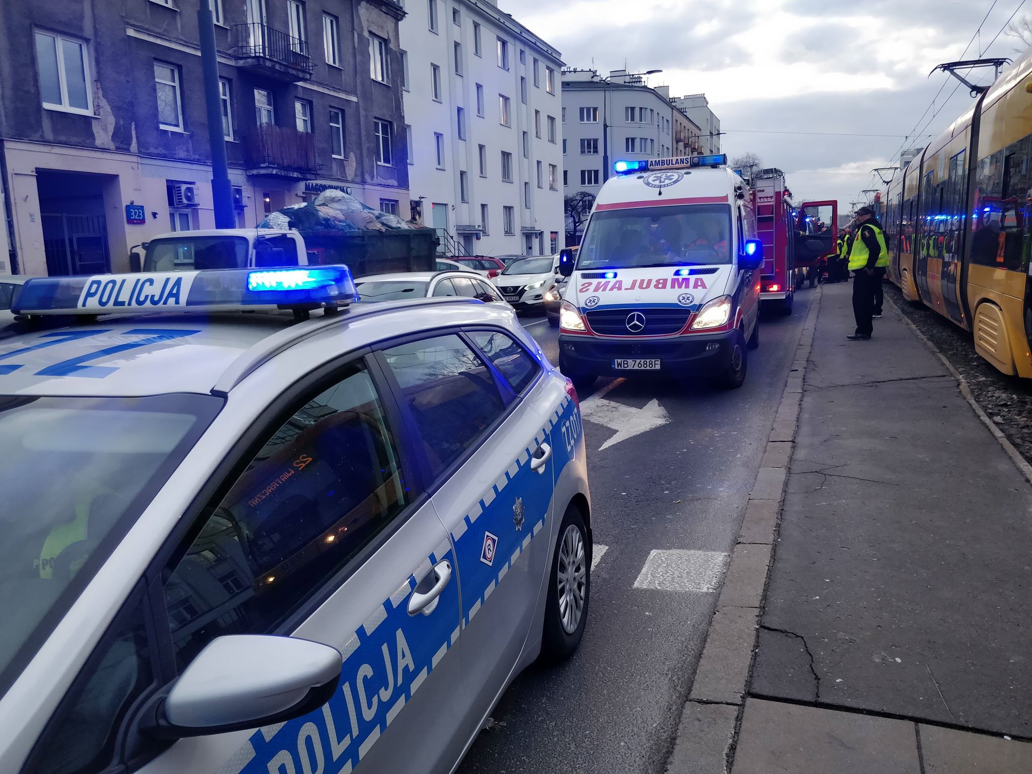 Na miejscu są 3 karetki pogotowia ratunkowego, 3 zastępy straży pożarnej, policja i Tramwaje Warszawskie.
