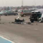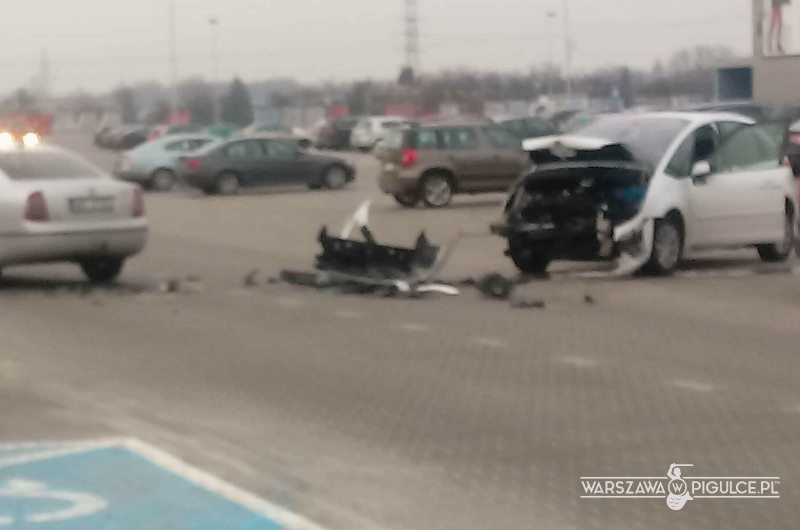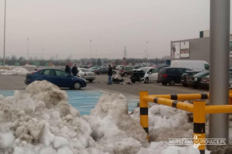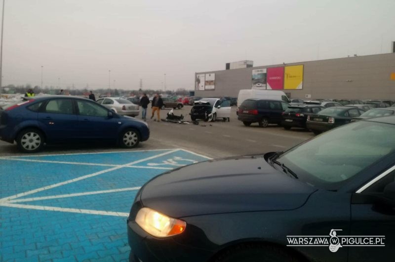 Wyglądające bardzo poważnie zderzenie miało miejsce na parkingu przy centrum handlowym ul. Marywilskiej. Nikomu nic się nie stało, ale uszkodzenia pojazdów są znaczne.