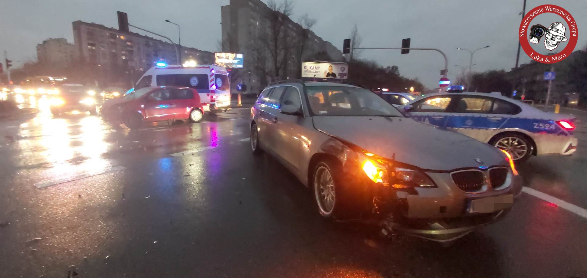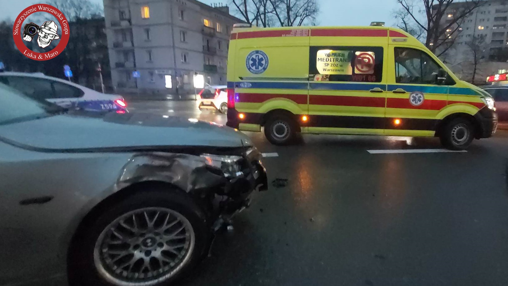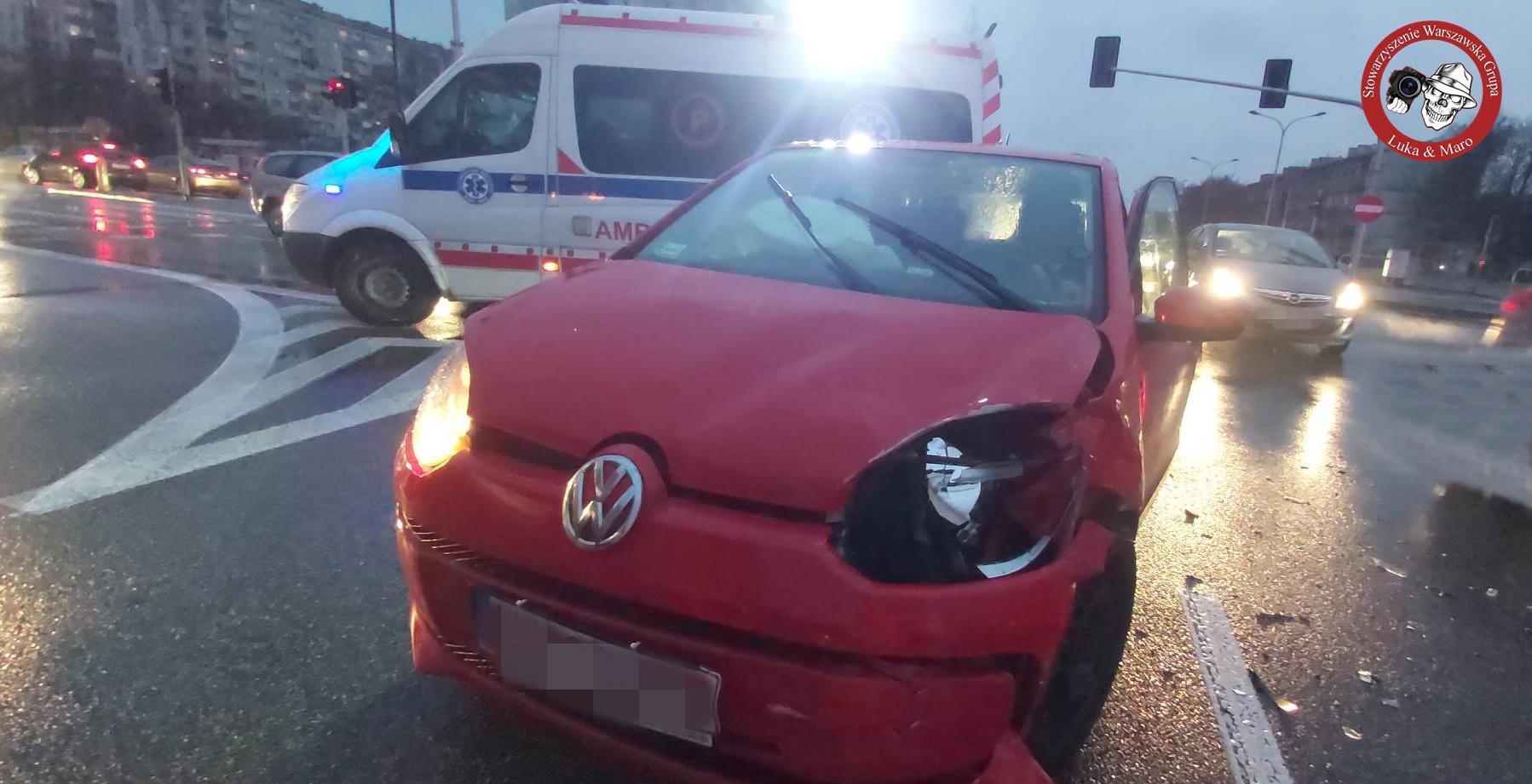Na skrzyżowaniu Reymonta i Wólczyńskiej doszło do zderzenia dwóch pojazdów na miejscu pracuje Kam-Med Ratownictwo Medyczne & Szkolenia z zakresu Pierwszej Pomocy.