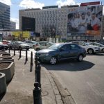 Zderzenie na rondzie Dmowskiego. Auto stoi w poprzek, duże utrudnienia